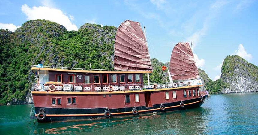 Cat Ba Sisters Cruise is a small wooden junk, in which you can choose to stay in the Family Suite Sea View (35m2) and Deluxe Sea View (30m2) which are all well-furnished with sufficient facilities. The cabins are equipped with a wardrobe, private bathroom, spacious bed, and other basic items for cozy accommodation. This ship mainly runs in Cat Ba and Lan Ha Bay routes, which takes you to the untouched areas of the natural landmarks, away from the tourist crowd. Cat Ba Sisters Cruise Lan Ha Bay offers the water sports facilities that upon your arrival at the destinations, it’s wonderful to enjoy kayaking, mountain climbing, squid fishing, snorkeling, etc., in not only Cat Ba Island but also Lan Ha Bay and Monkey Island (Dao Cat Dua). Also, make sure you swim in Ba Trai Dao Beach. Other times, you can just access the sundeck for calm moments. Eminent services on board include the nice dining in an in-hour restaurant that serves Asian dishes, Halal food, and vegetarian food. Another strength is the “price cannot be better” which opens the opportunities for a budget-yet-very-enjoyable vacation.